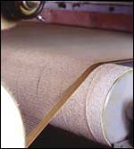 采用优质的高强度进口玻璃纤维及凯夫拉(芳纶)为基材,编织成高强度的网状基布,再涂覆优良高质的特氟龙树脂, 制成特氟龙(PTFE)网格输送带的基布。