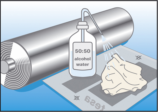 | 用50%的酒精與水混合 溶液清潔版材和版輥. |