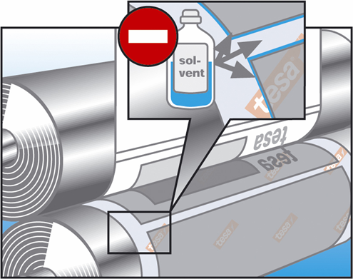 - 溶劑接觸膠帶會降低粘結力並導致翹版